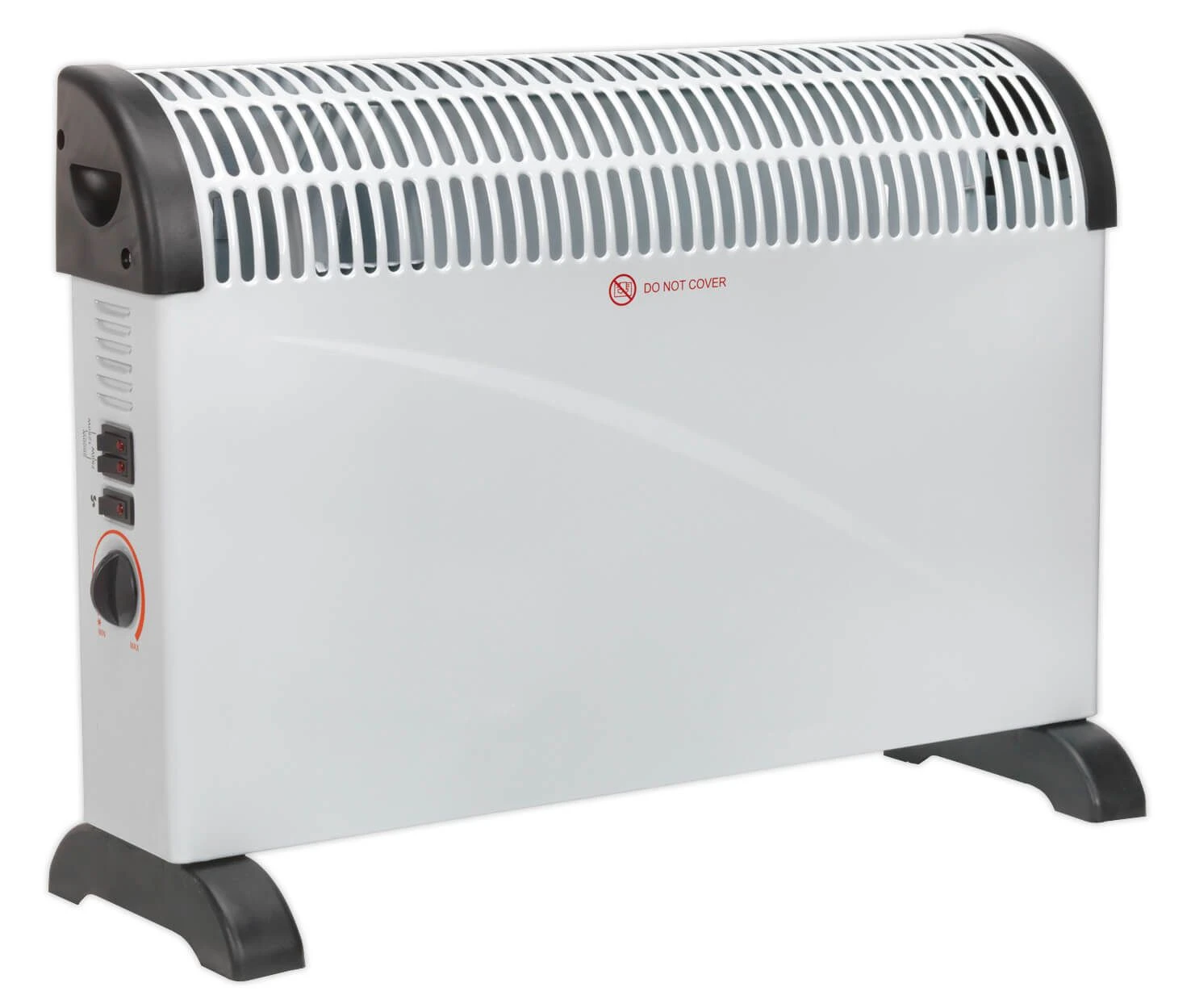 - Electric convector heater features built-in turbo fan for accelerated heating.