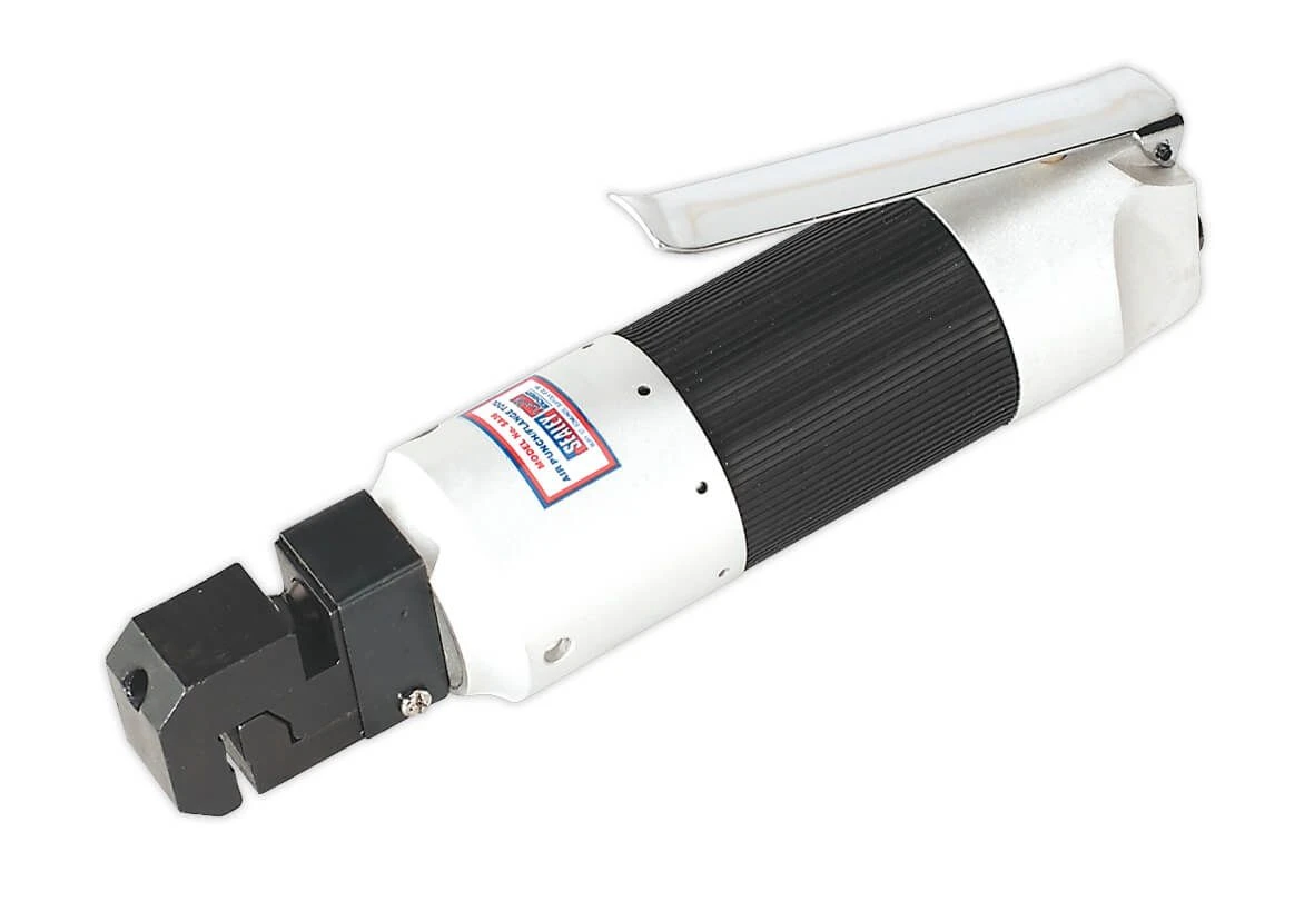 - Puts a 10mm flange onto car panel thickness sheet for lap jointing and puts 5mm holes in panels for MIG spot-welding.