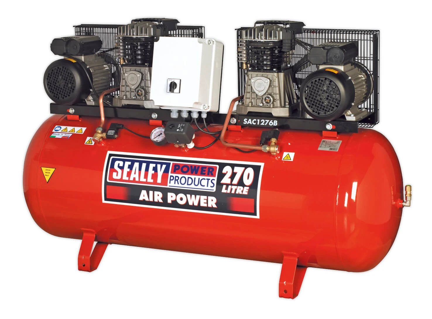 - Twin capacitors and a centrifugal switch aid trouble free starting on a 230V 32Amp supply.
