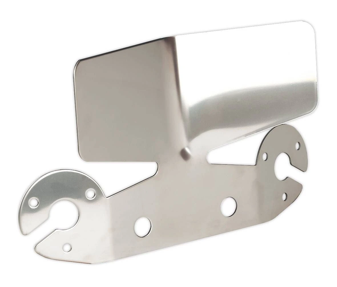 - Stainless steel plate with mounts for two sockets and pre-drilled mounting points at 90mm centres.