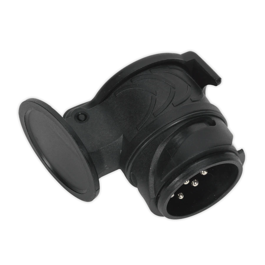 - Adaptor plugs into towing vehicle’s 13-pin Euro socket to allow connection of a caravan or trailer with UK standard 7-pin N-type plug.