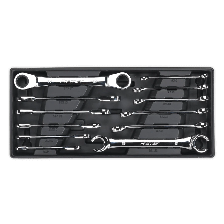- Tool Tray with 12pc Flare Nut & Ratchet Ring Spanner Set.