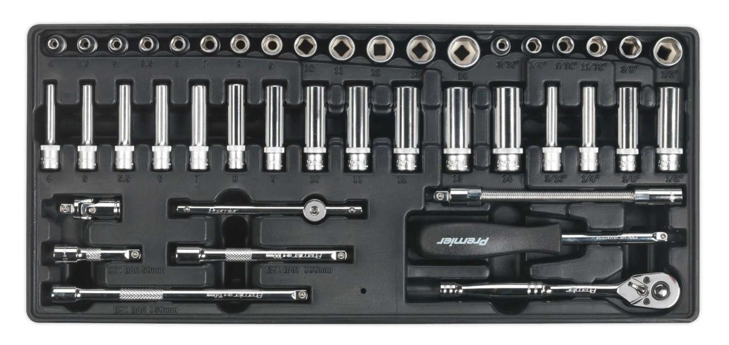- Tool Tray with 43pc 1/4″Sq Drive Socket Set.
