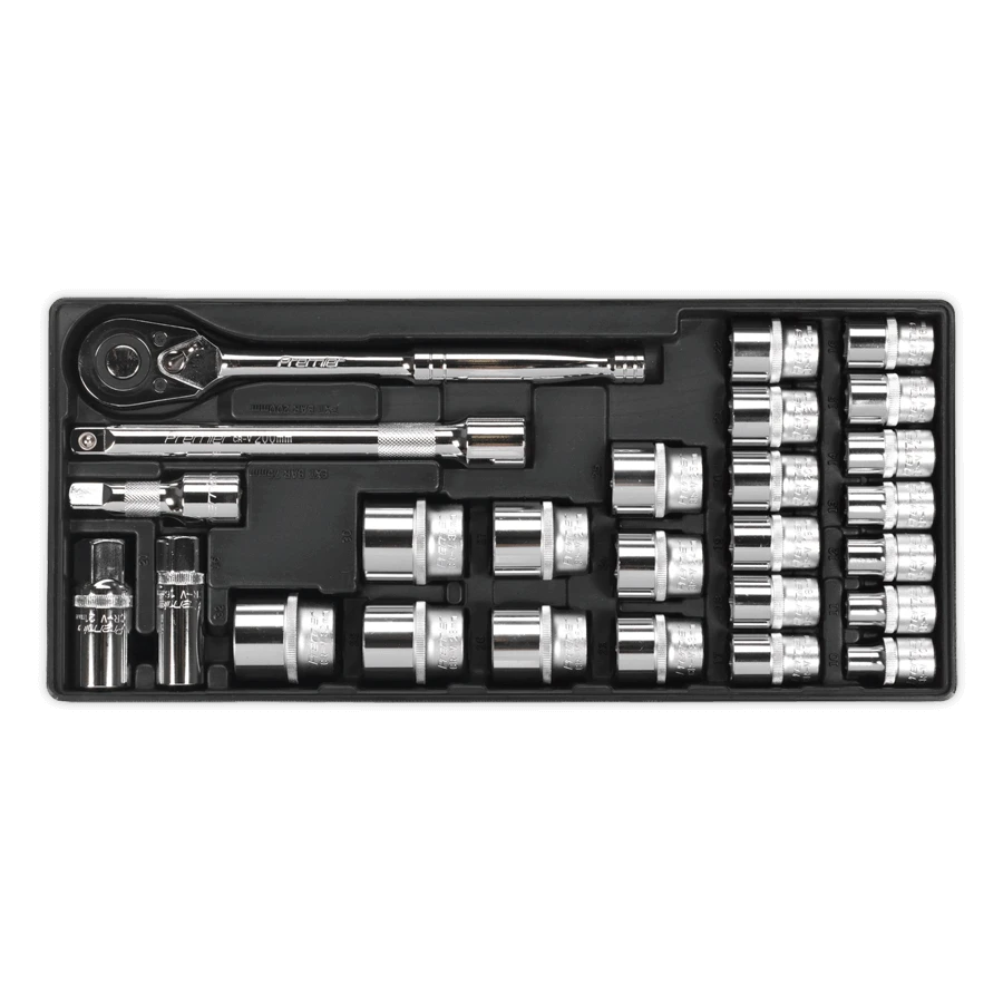 - Tool Tray with 26pc 1/2″Sq Drive Socket Set.