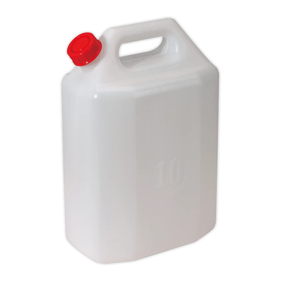 - 10ltr Plastic water container with screw cap and inner sealing plug.