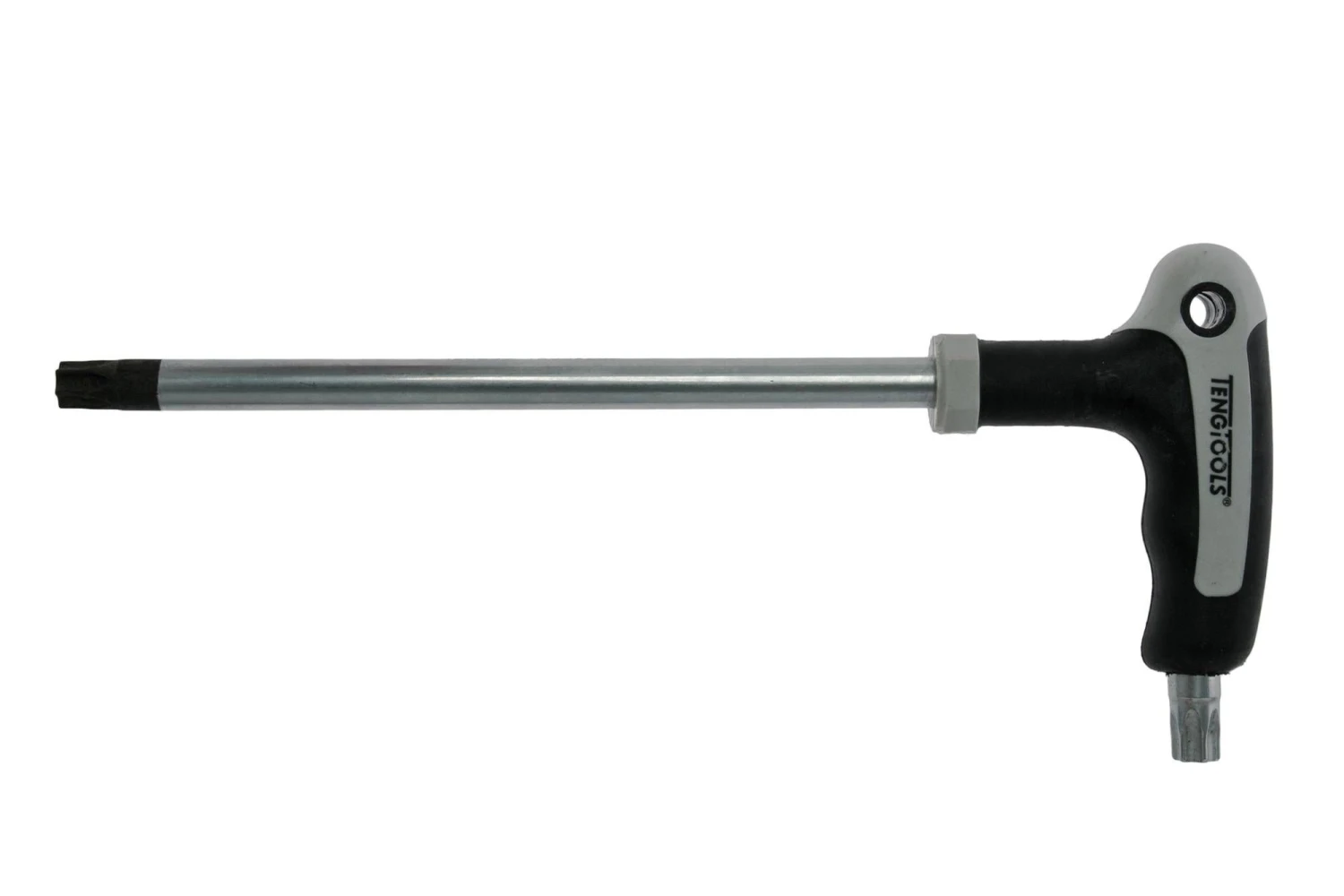 TX key with T Handle for internal TX heads. The short key end features a slot for tamper proof screws. Made with CrMo alloy steel for extra strength.
