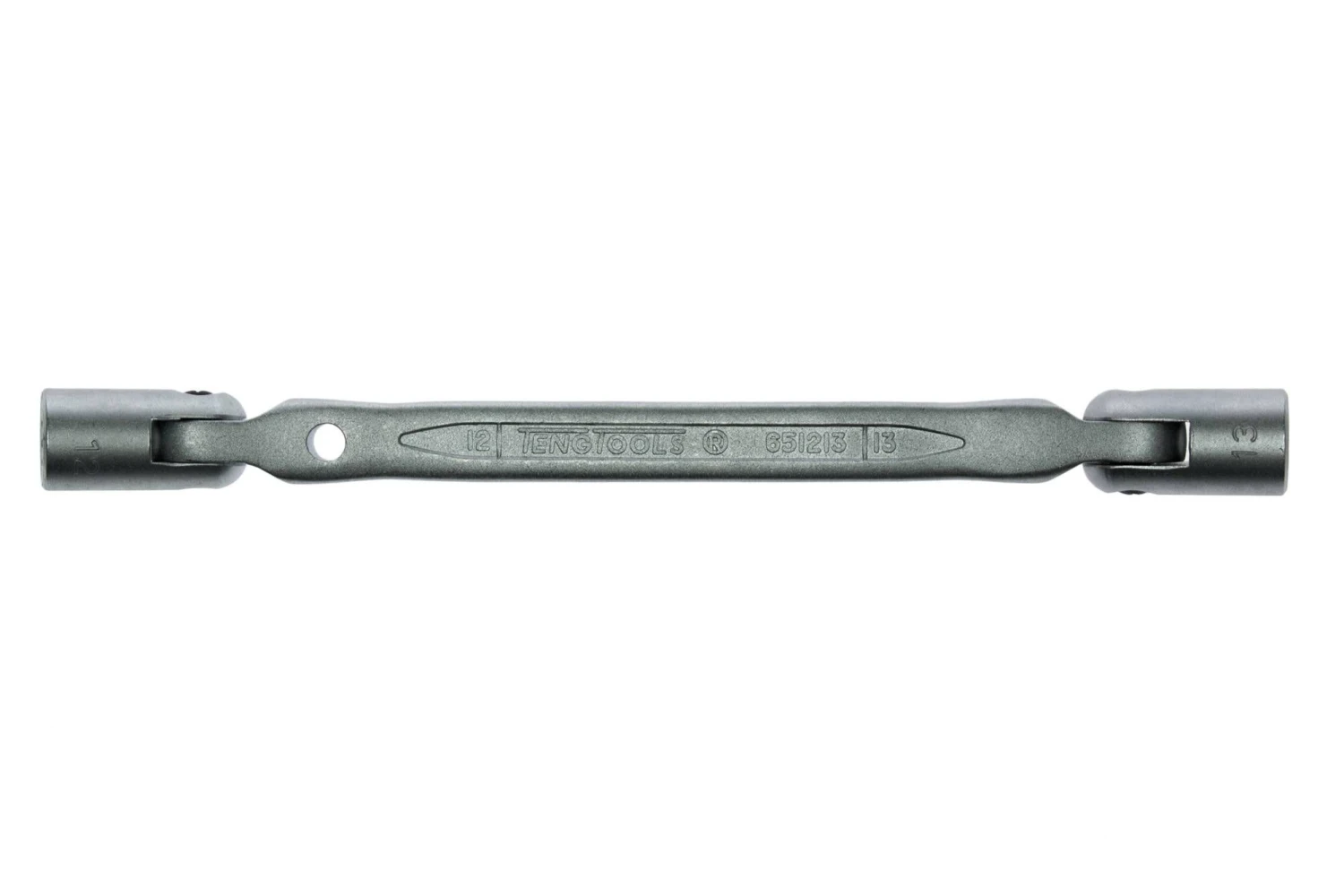 Double flex wrench with different size 12 point sockets at each end. Made from chrome vanadium with a satin finish.