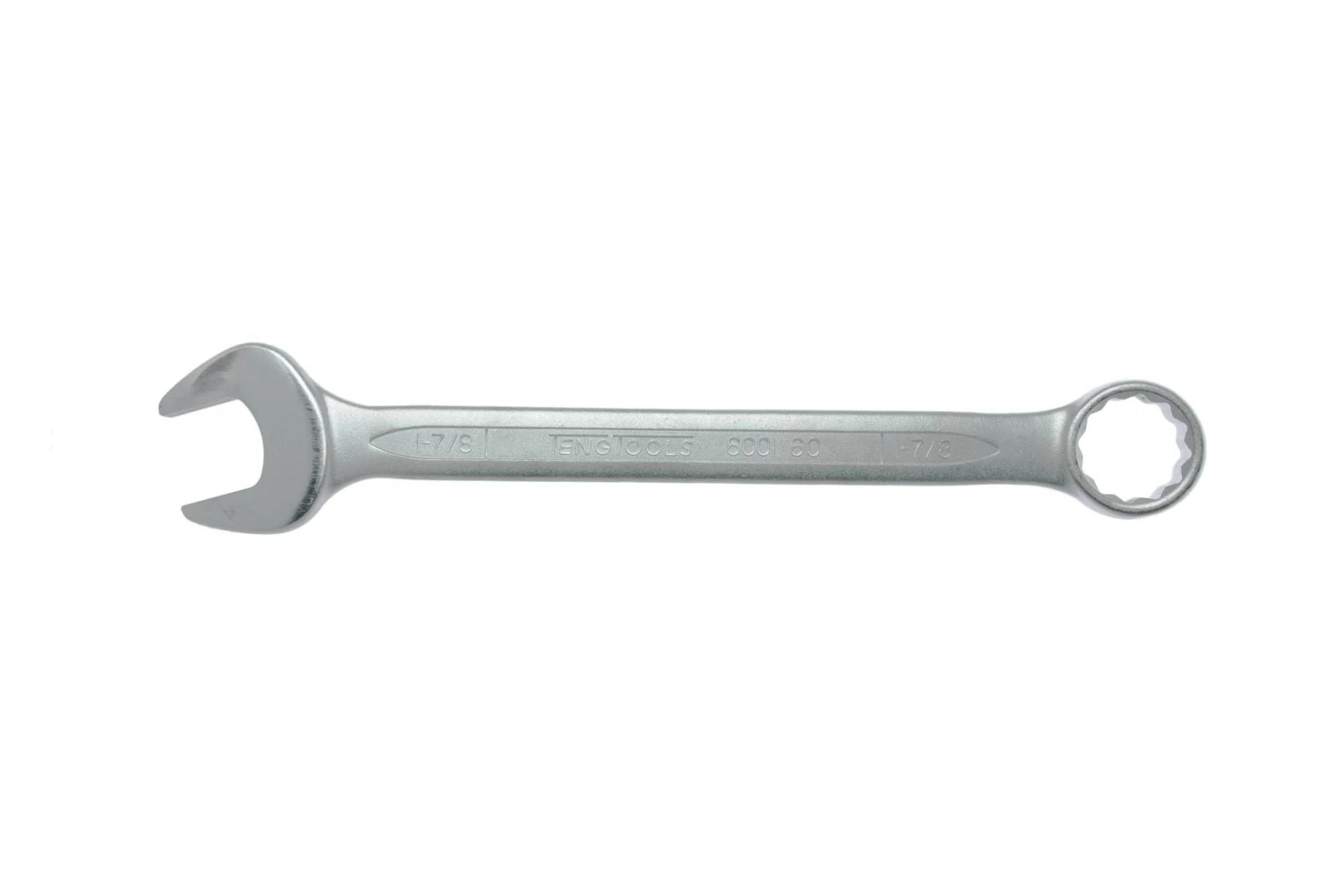 AF (SAE) combination spanner. Same dimension at both ends. The 12 point ring is at a 15° angle. Made from chrome vanadium with a satin finish. DIN 3113.