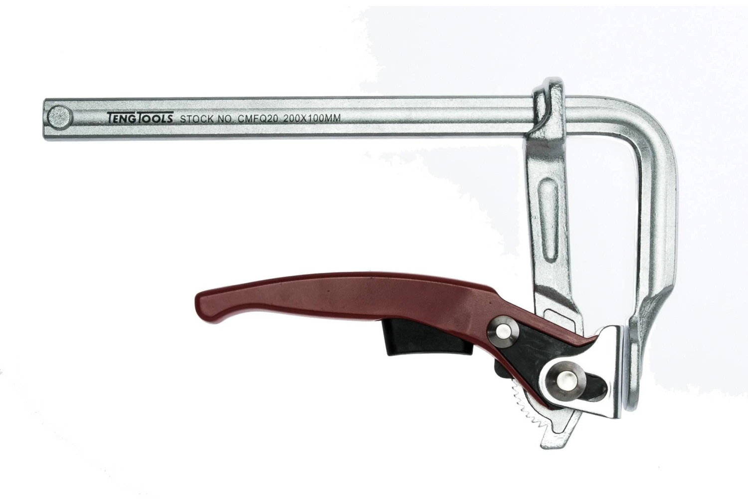 For high pressure, fast action clamping. The ratchet type lever prevents over loading and resists vibration. Features include ergonomic clamping and release lever.