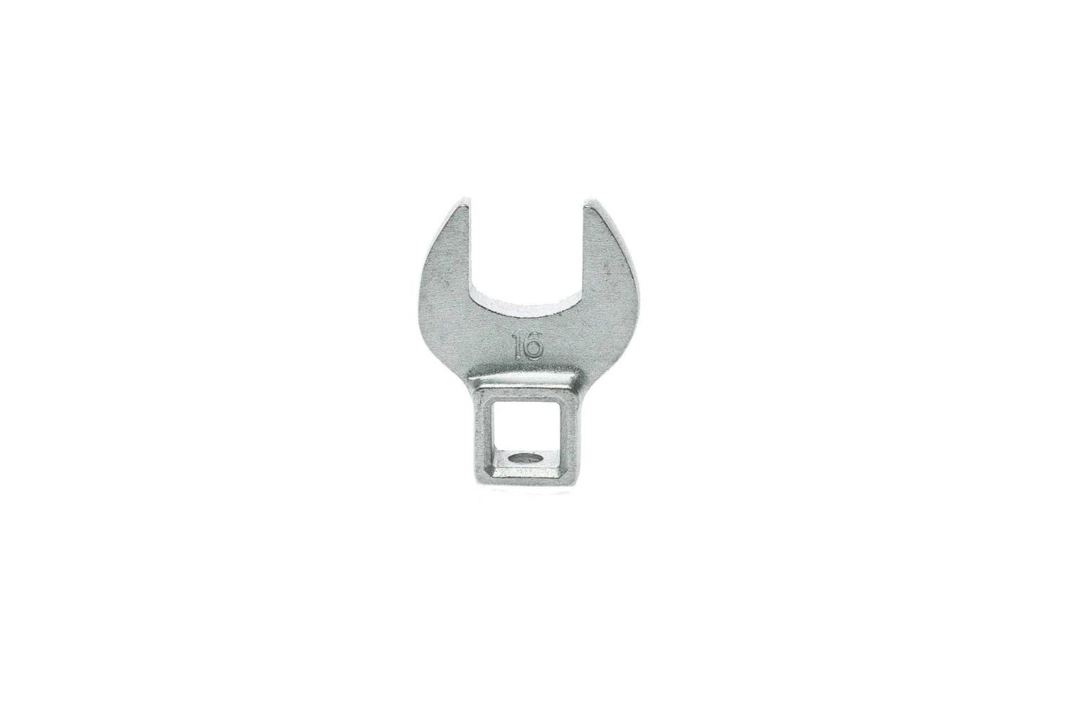 Metric crow foot wrench for tightening with socket tools e.g. extension bars and ratchet handles. Made from chrome vanadium with a satin finish.