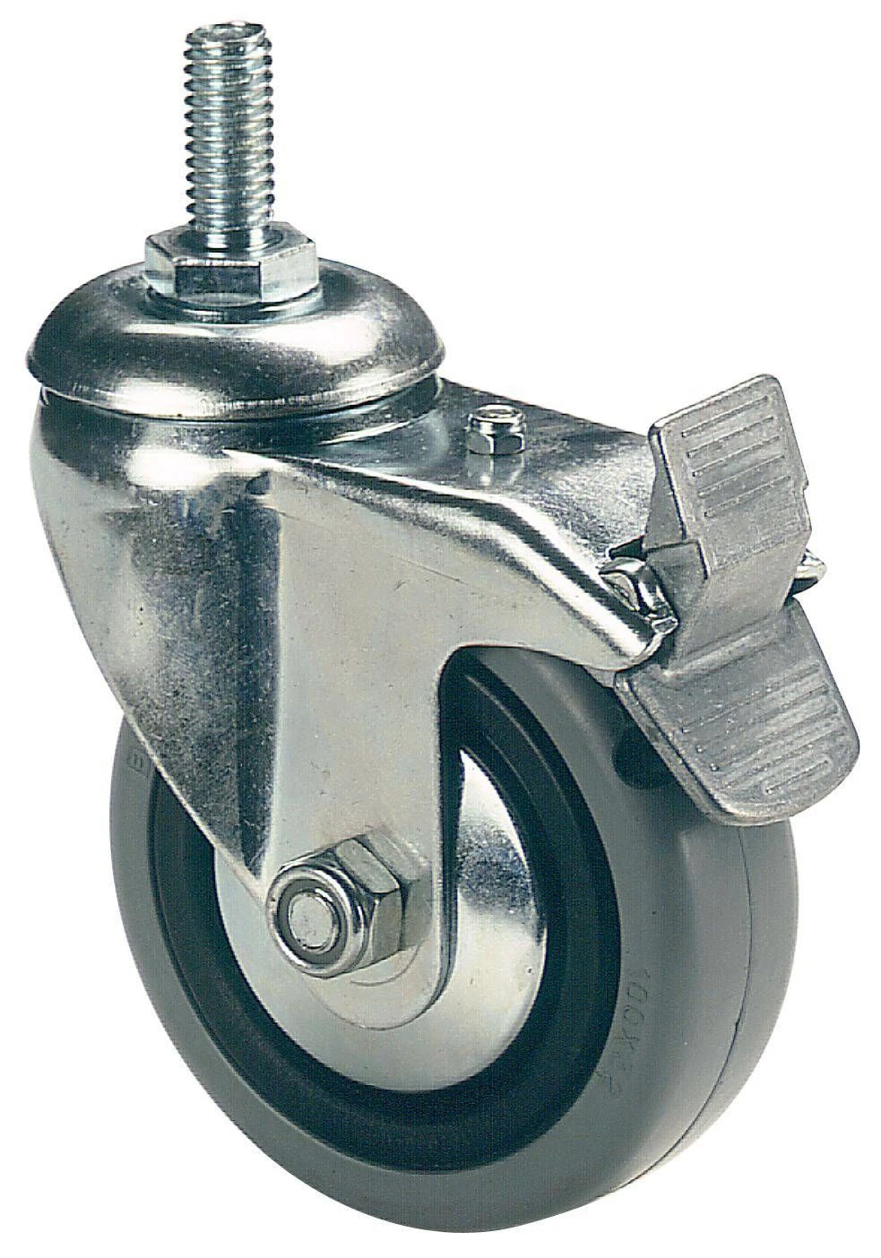 Set of four 1 1/4″ castor wheels with 1/2″ bolts. Features include doube brakes and a loading capacity of 80 kilos per piece or 250 kilos for the set of four.